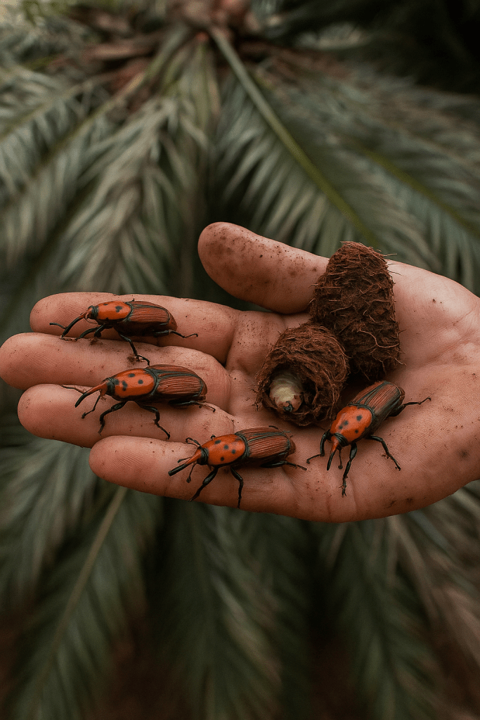 El picudo rojo (Rhynchophorus ferrugineus) amenaza gravemente a las palmeras canarias y datileras en la costa mediterránea. En los últimos años, su expansión ha causado grandes daños en jardines y espacios públicos.